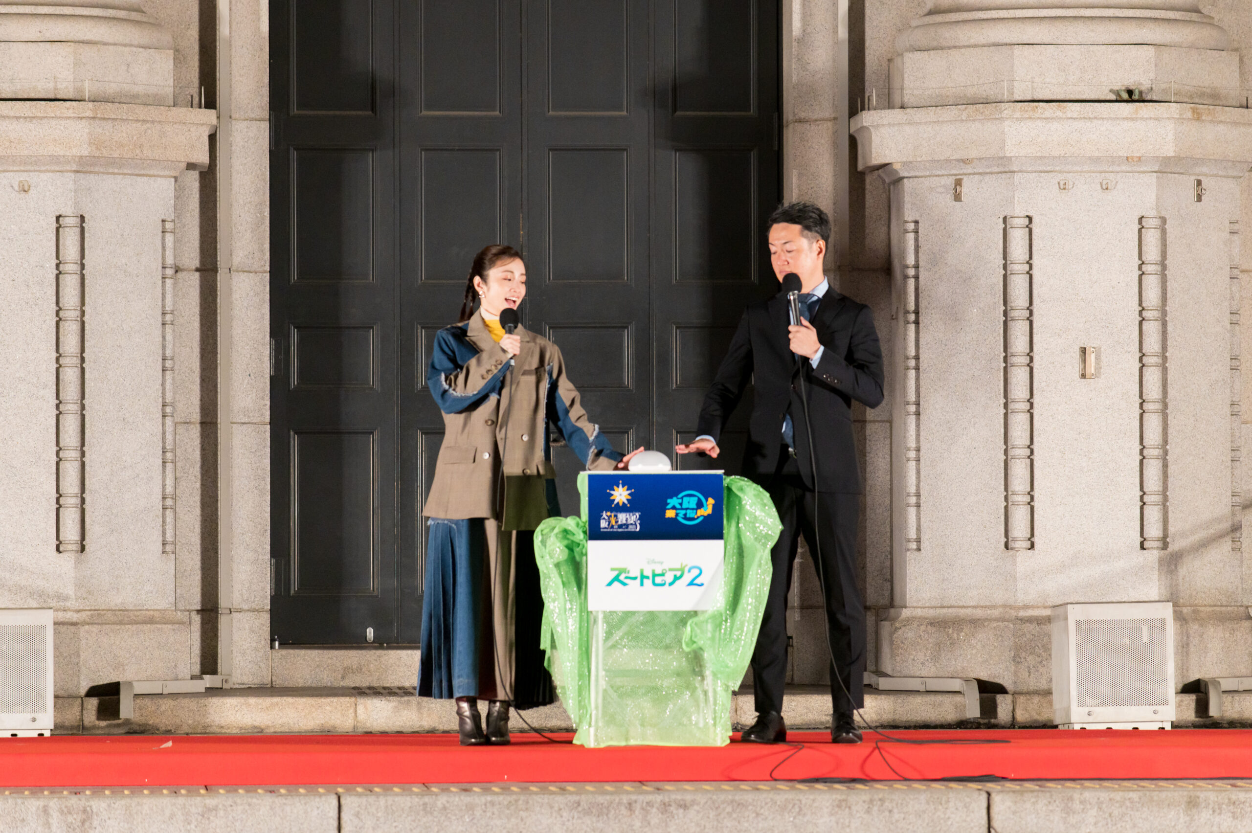 再びバディを組んだ皮肉屋のニックと、夢を諦めないジュディが、ズートピアに突如現れた指名手配犯をきっかけに、ズートピアの歴史にまつわる謎に挑む『ズートピア2』が全国の劇場で大ヒット上映中!今回、大阪の冬の風物詩イベント「OSAKA光のルネサンス2025 大阪市中央公会堂プロジェクションマッピング」で、『ズートピア2』との連携プログラムが上映されるにあたり、12月14日(日)には、大阪・中之島の大阪市中央公会堂東側玄関前で大阪市中央公会堂プロジェクションマッピング初回上映セレモニーが開催された。