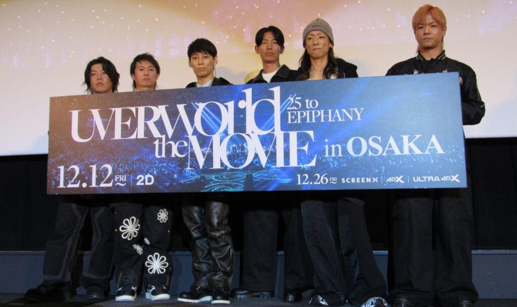 UVERworldの結成25周年とデビュー20周年を記念したドキュメンタリー『UVERworld THE MOVIE: 25 to EPIPHANY』が12月12日(金)より全国の劇場で公開中。12月18日(木)には、大阪・梅田のT・ジョイ梅田にUVERworldを迎え舞台挨拶が開催された。