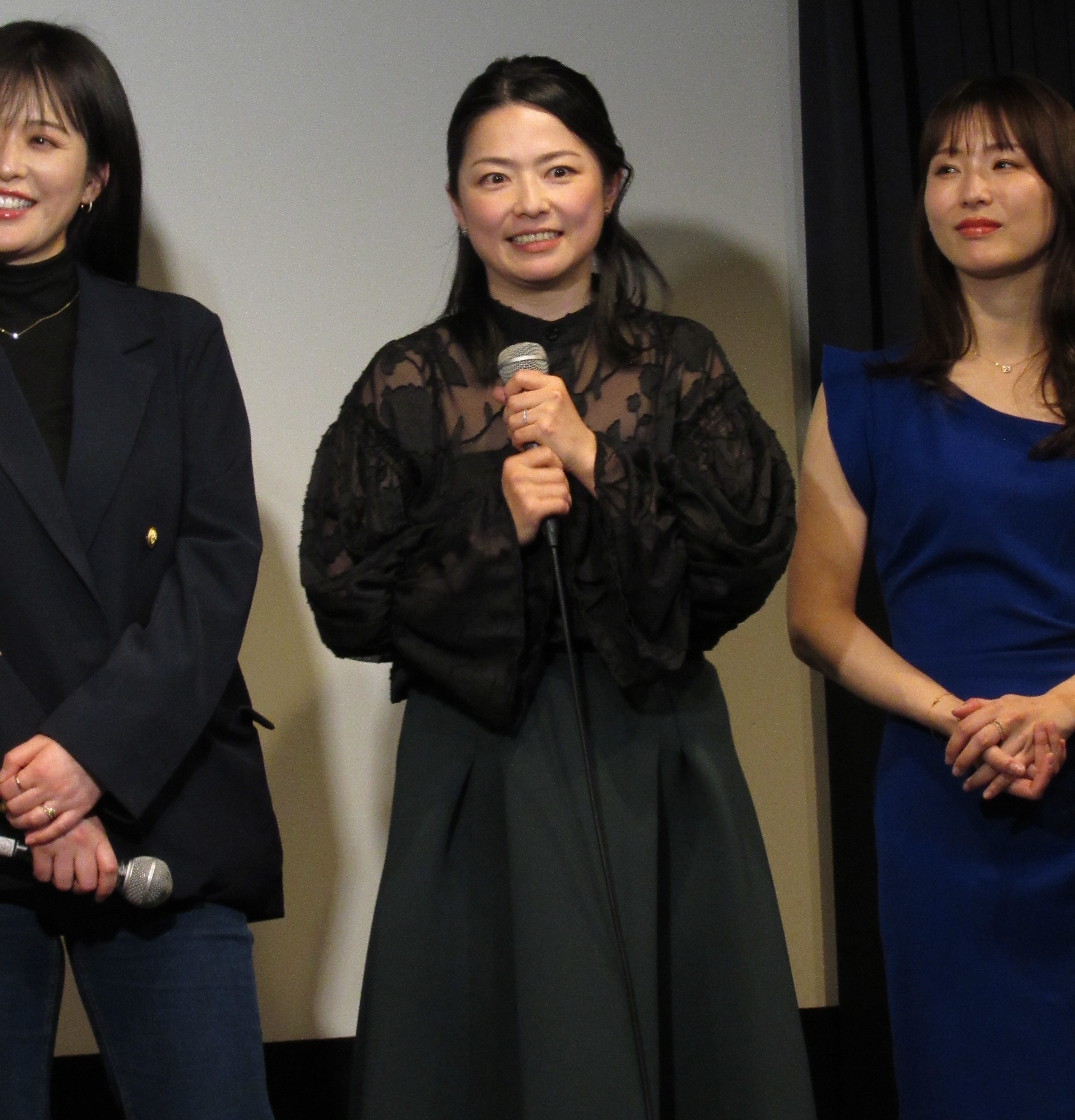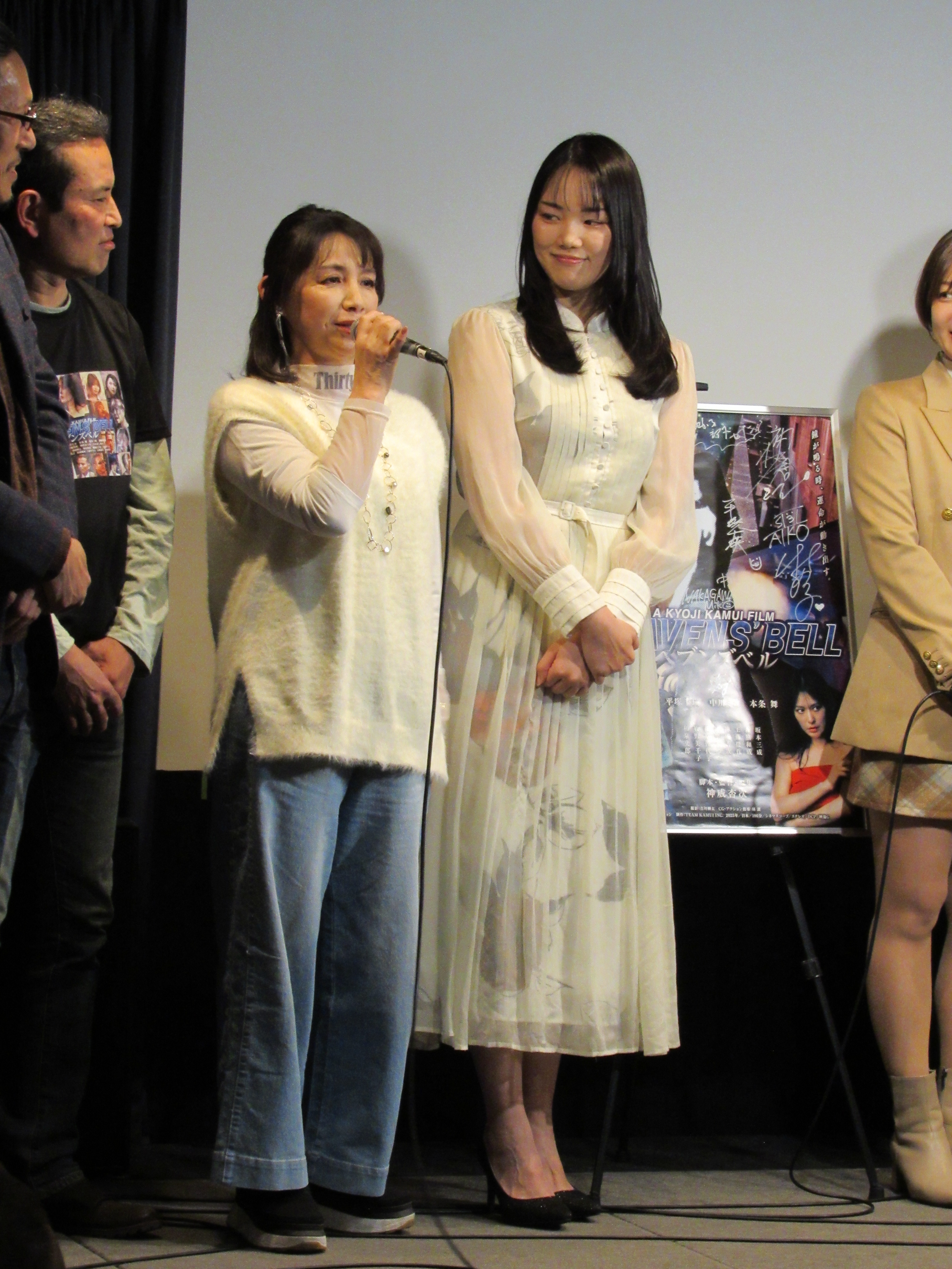 今回、上映後に平塚千瑛さん、中川ミコさん、本条舞さん、たかはしあいこさん、牧野美千子さん、萩原佐代子さん、南つぐみさん、坂本三成さん、萩田博之さん、蜂谷英昭さん、裏地圭さん、神威杏次監督が登壇。多くの方々が登壇し、賑やかな舞台挨拶が繰り広げられた。