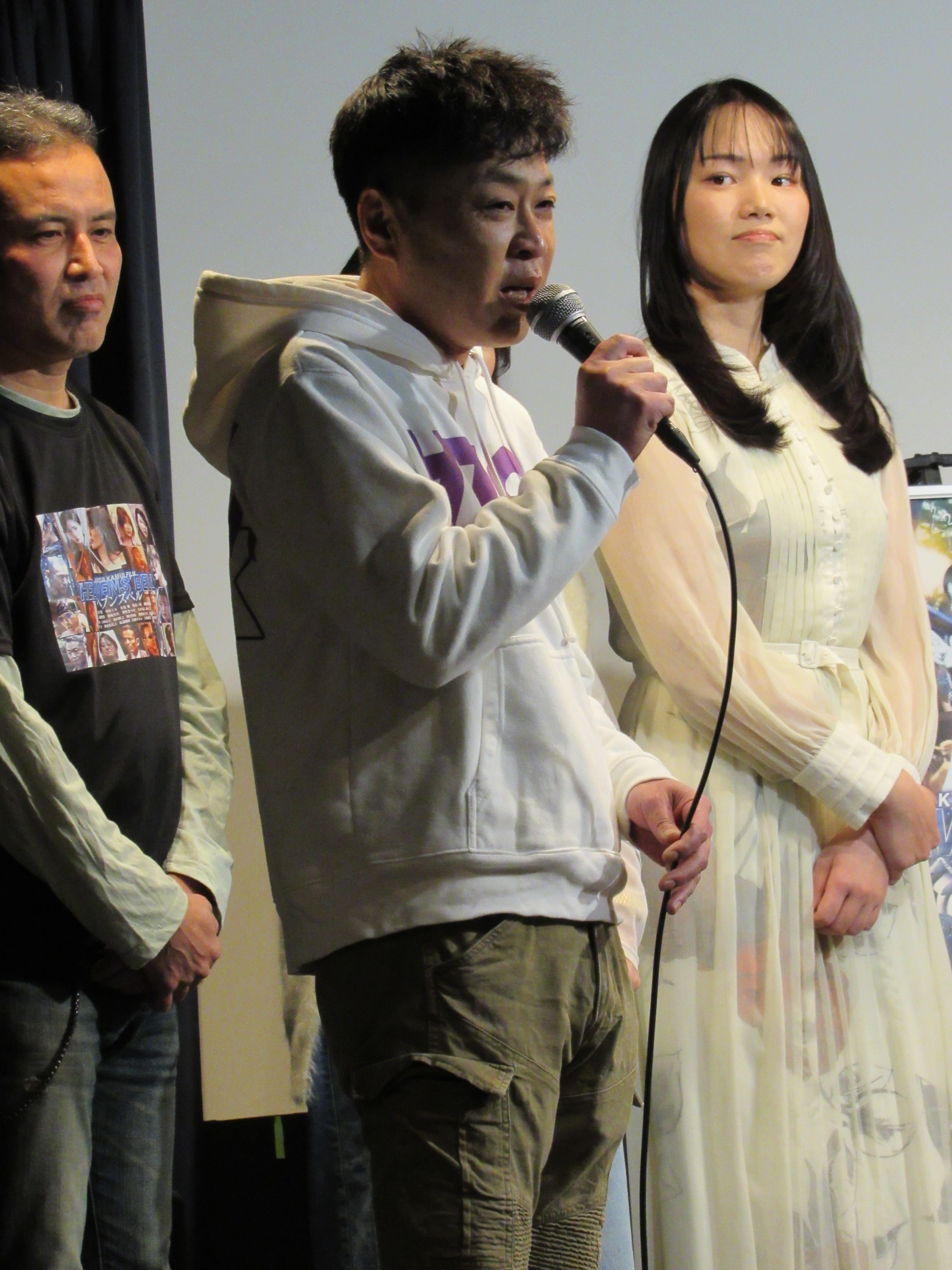 牧野さんは、神威監督作品では、悪役か変わった役ばかりだったが、今作では、初めて良い人の役を演じることになり、喜んでいた。そして、シアターセブンでの舞台挨拶にあたり、十三駅前にある喜八洲総本舗のみたらし団子を楽しみにしており「ホントに美味しいんですよ」と絶賛。