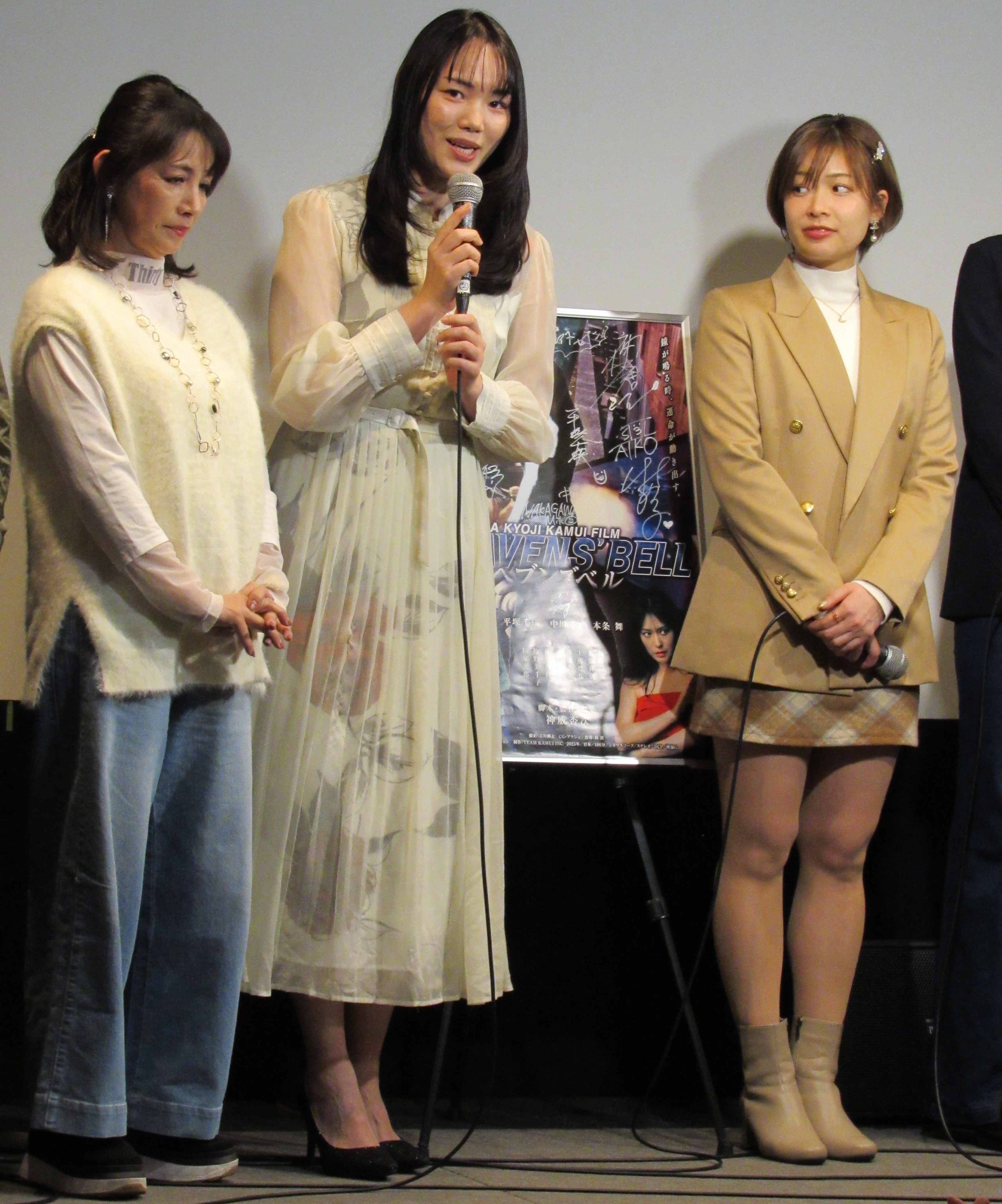20年前の一家惨殺事件を生き延びた女性が、差出人不明の写真を手がかりに、治外法権の街“エリア4”へ足を踏み入れる様子をコミカルな群像劇を交えて描き出す『ヘブンズベル』が3月21日(土)より大阪・十三のシアターセブンで公開。初日には舞台挨拶が開催された。